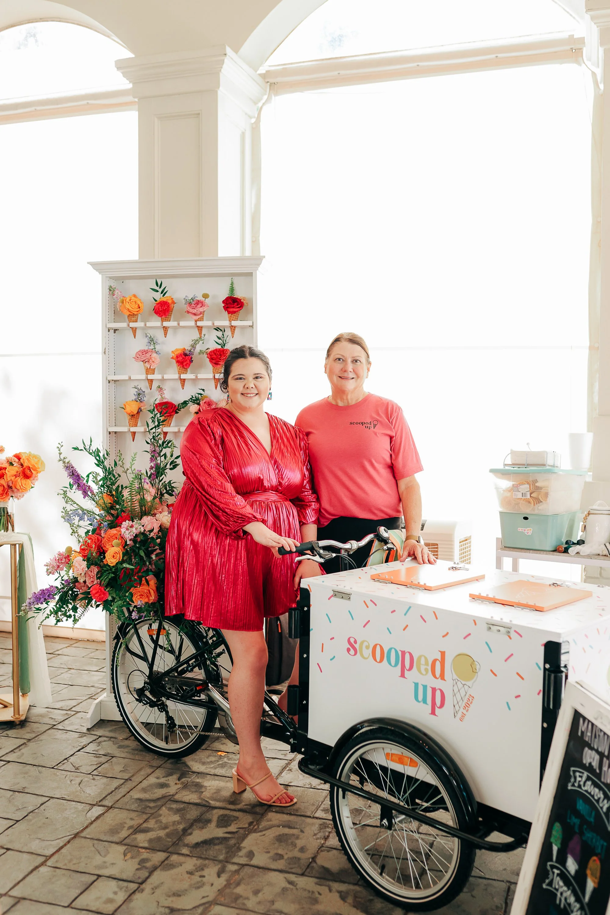 The dynamic duo, the Scooped Up gals, arrive at your event on with charming trike to scoop up the tastiest treat – ice cream (or sherbet)!